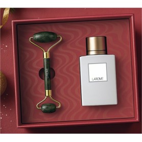 Pack Larome Natal Mulher: Perfume100ml e massajador facial de pedra de jade. Um presente elegante e feminino, perfeito para celebrar o Natal com sofisticação e cuidado.